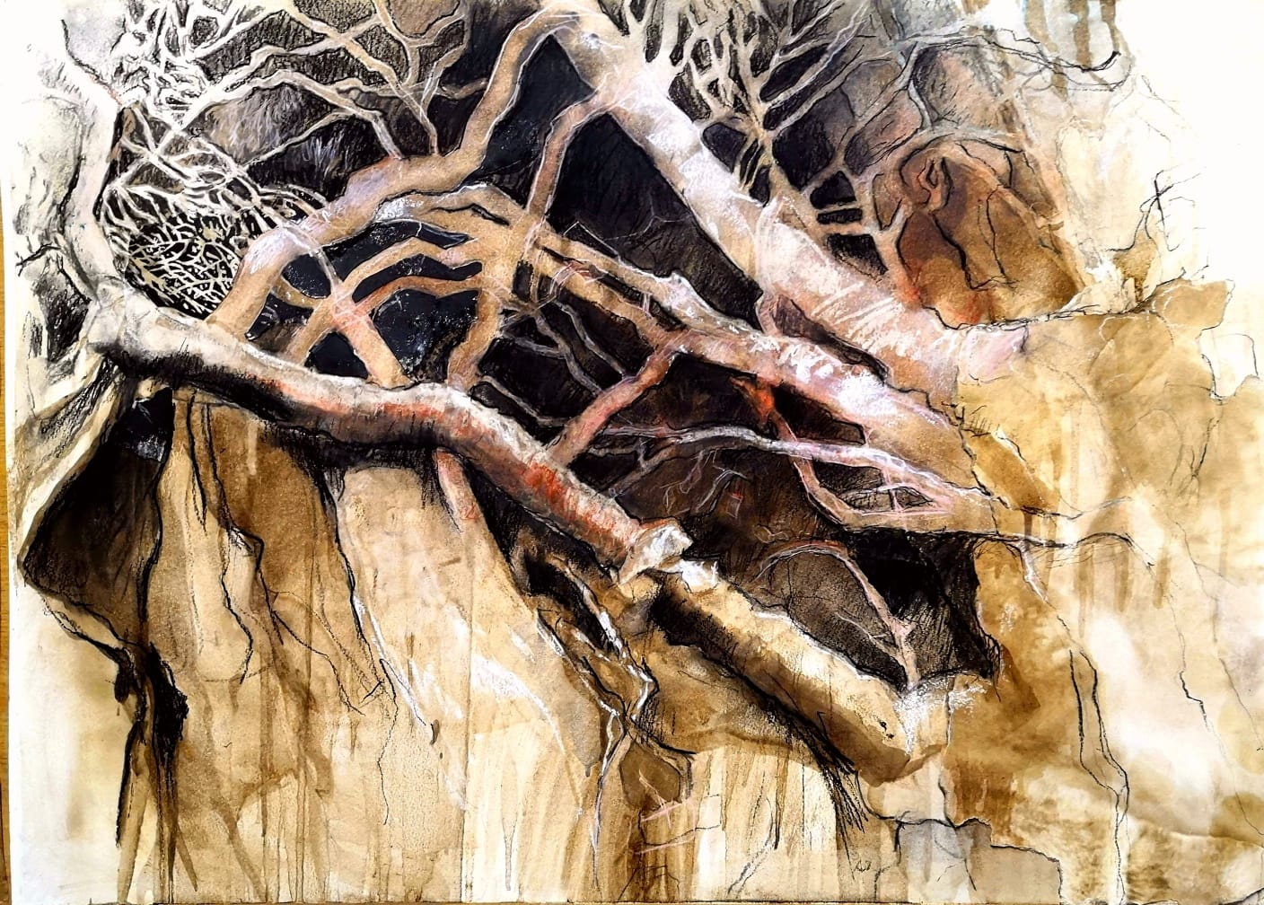 “Paula Louw’s work is rooted in process and discovery, layering paint, charcoal and reclaimed materials with mark making to tell personal stories about change and resilience.The materials transform into textured, contemplative pieces that create a sense of quite intrigue”.