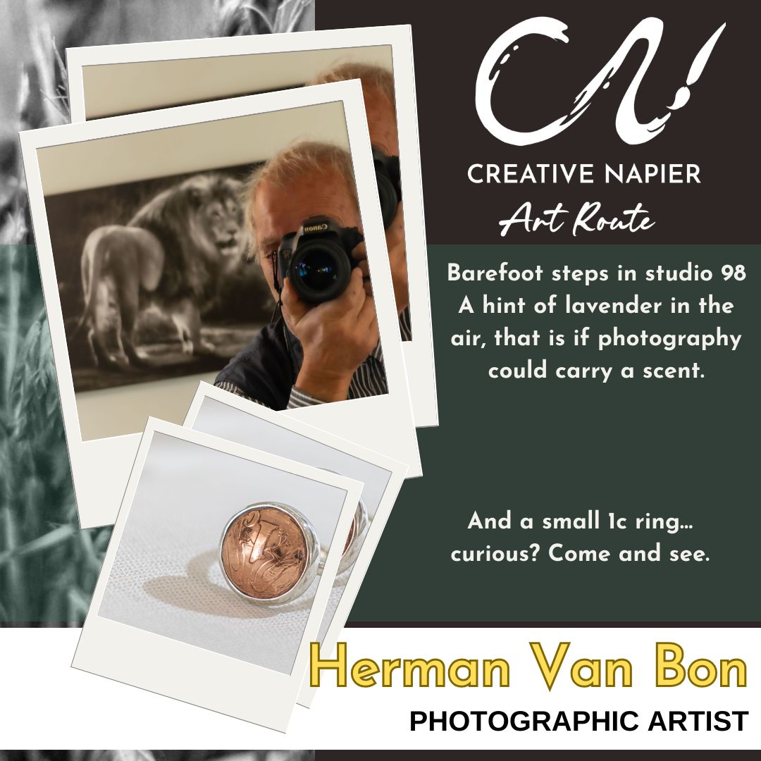 A wide variety of local artists (virtually all making a living out of their work) present their work in their own studios in Napier. At Studio98 along the main road in Napier you will find my jewellery designs; art photography pf Herman Van Bon; sculptures of Mandy Fuchs and paintings/drawings of Paula Louw.