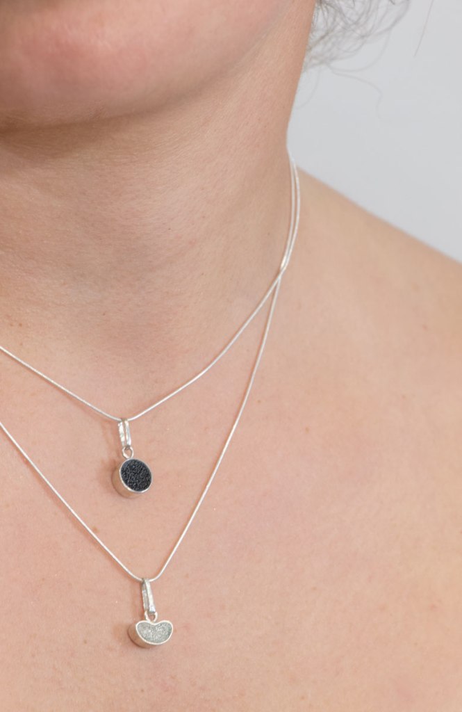 Crafted in radiant Sterling Silver, the necklace with pendants is a tribute to the harmony found in nature and within ourselves. Gently resting on the upper chest, this elegant piece is designed to sit close to the heart – a reminder of the steady centre we all carry within.